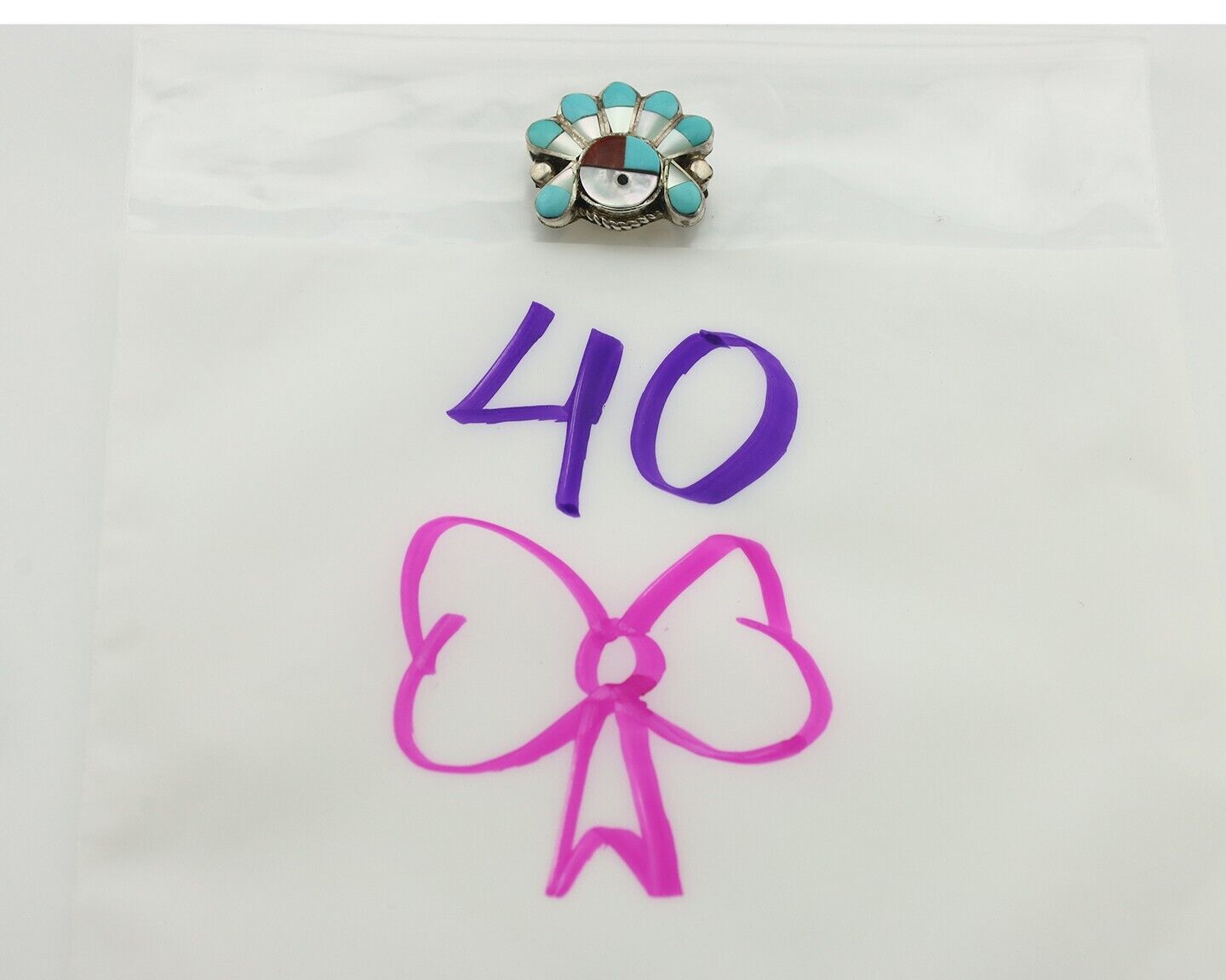 Zuni Pin Pendant .925 Silver Natural Gemstone Native American Artist C.80's