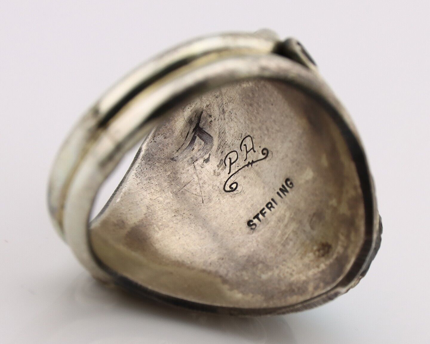 Zuni Ring 925 Silver Blue Turquoise & Coral Artsti Signed Patsy Allopowa C.80's