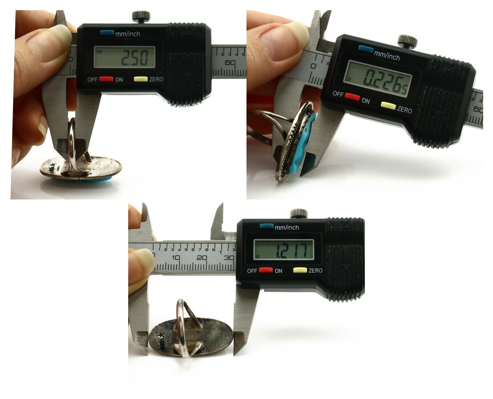 Zuni Ring .925 Silver Natural Hand Carved Turquoise Signed MS C.80's