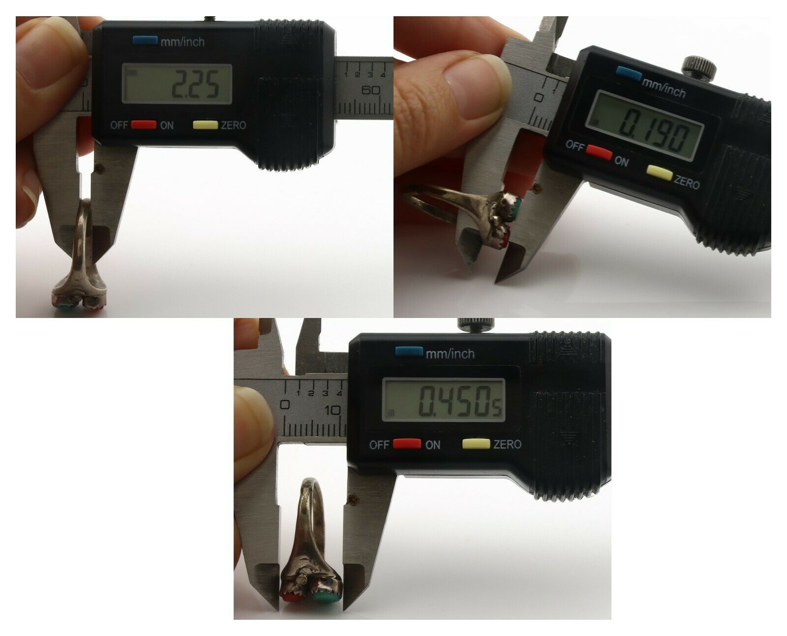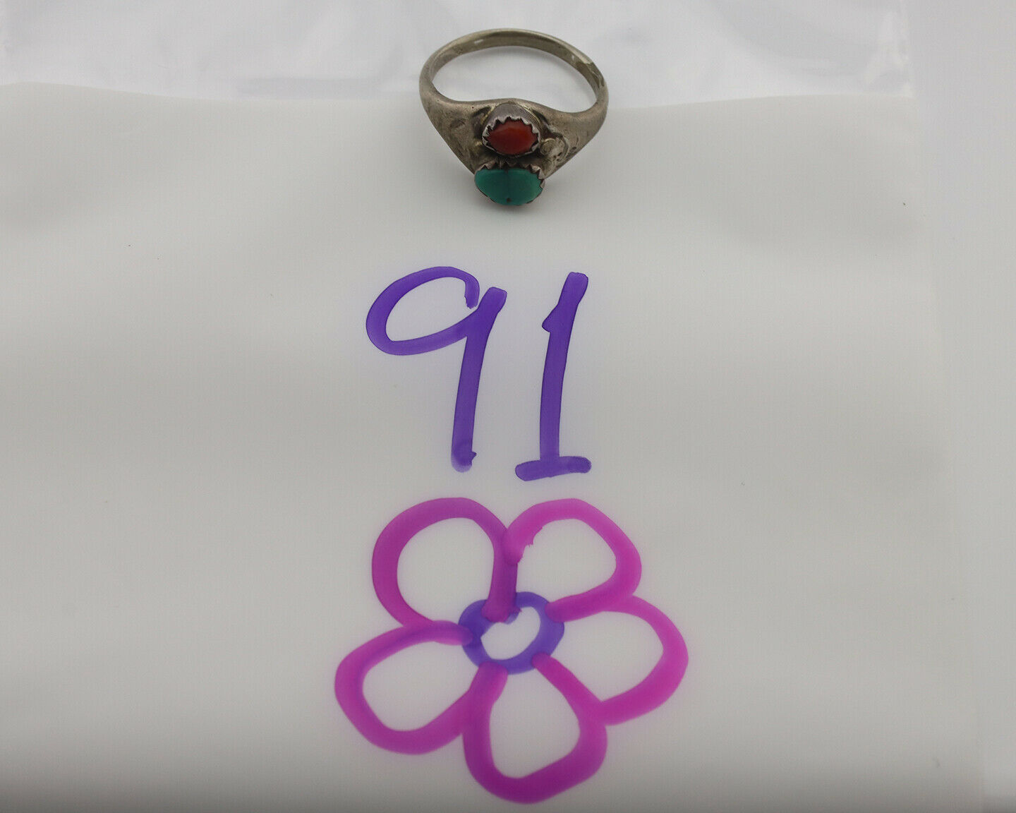 Zuni Ring .925 Silver Natural Turquoise & Coral Native American Artist C.1980's