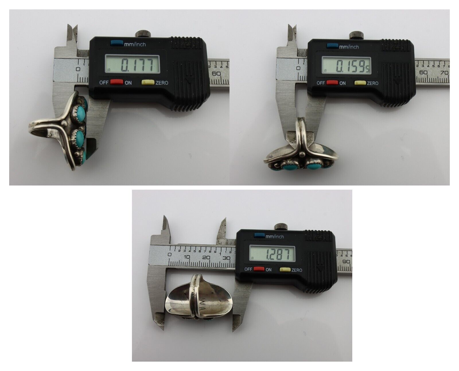 Zuni Ring 925 Silver Sleeping Beauty Turquoise Signed VM C.80's