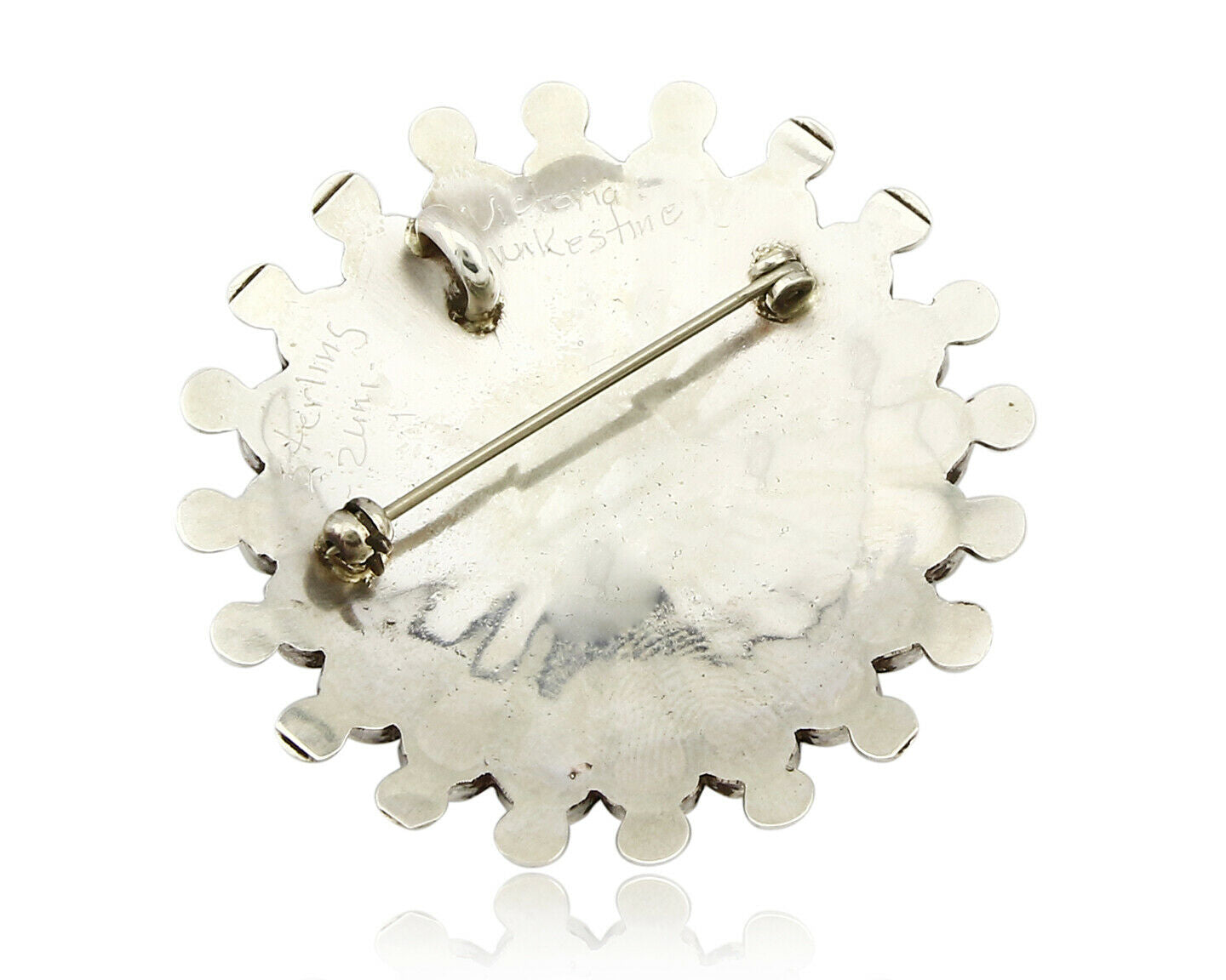 Zuni Signed Artist Victoria Unkestine Inlaid .925 SOLID Silver Tewa Pendant Pin